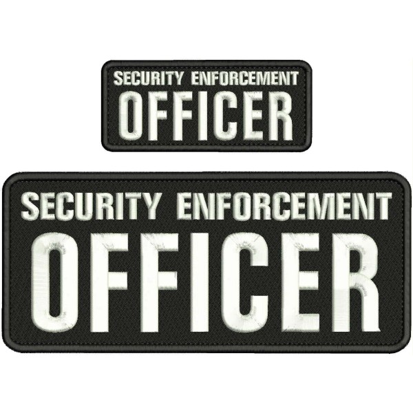 SECURITY E OFFICER 2 EMB PATCHES 4X10 & 2X5 VELCR@ ON BACK WHITE ON BLACK