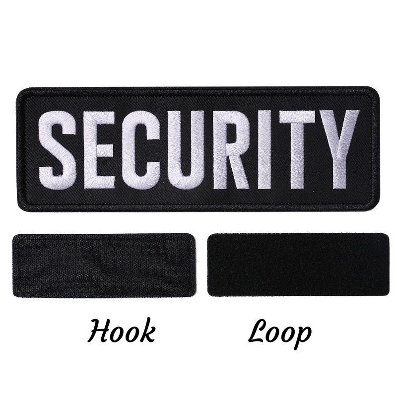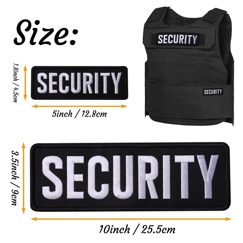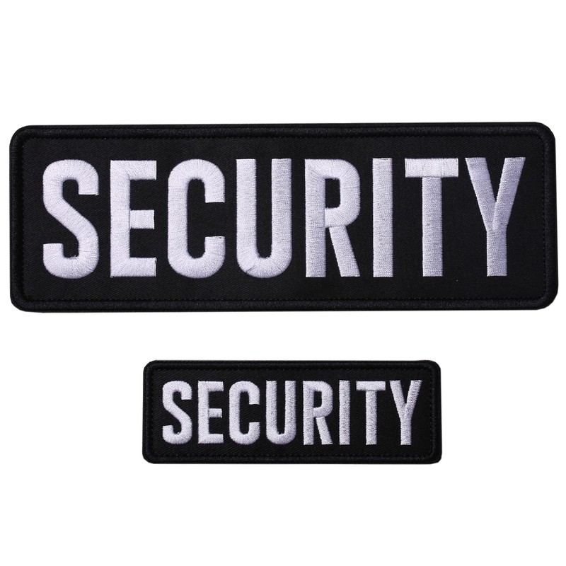Security Embroidered Patches Hook and Loop, Durable Fabric Security Patch for Officer Guard Uniforms Vest, Jacket, Carrier, Hat, One Small and One Large Black