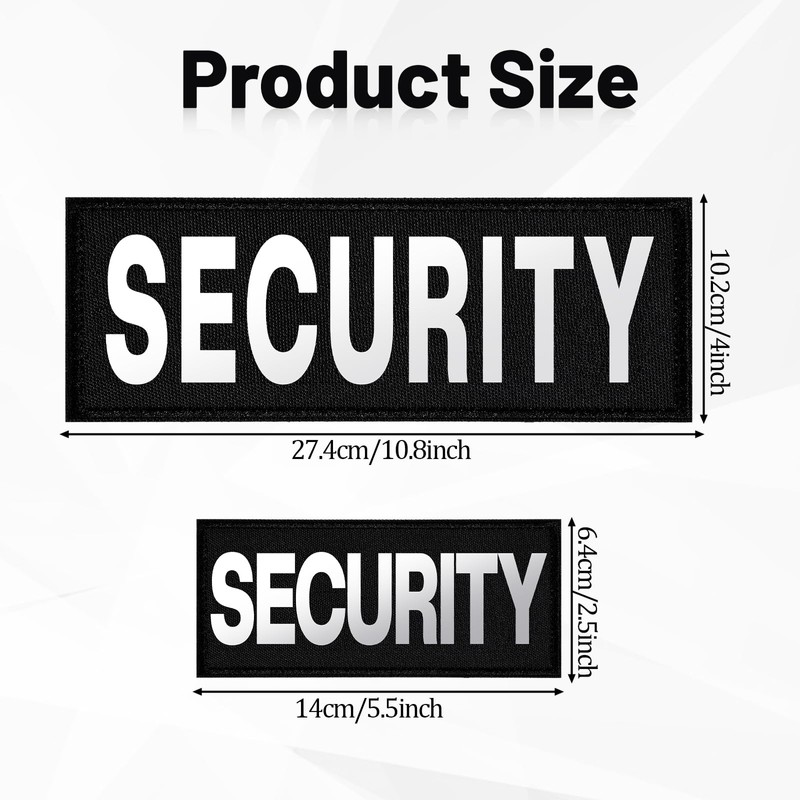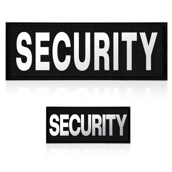 Security Patch, 2 Pcs Reflective Security Hook and Loop Patch for Vest Printed Letters Embroidery Patches for Officer Guard Custom Uniforms Vest, Jacket, Carrier, Bag, Hat (Black, 1 Small and 1 Large)
