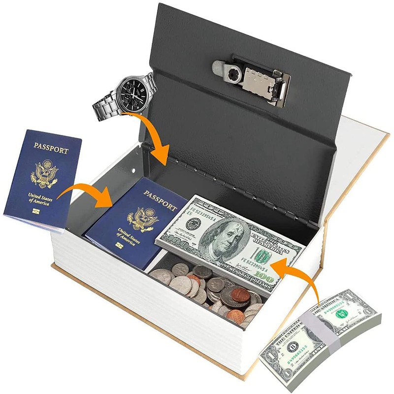 • STRONG CONCEALMENT -- Simulation appearance design, this secret safe box looks like a real book in every angle, blend in way of the safe, nobody will discover it. It is easily fused with other books on the shelf. Keep your personal items hidden in plain view so that only you will know where to access.