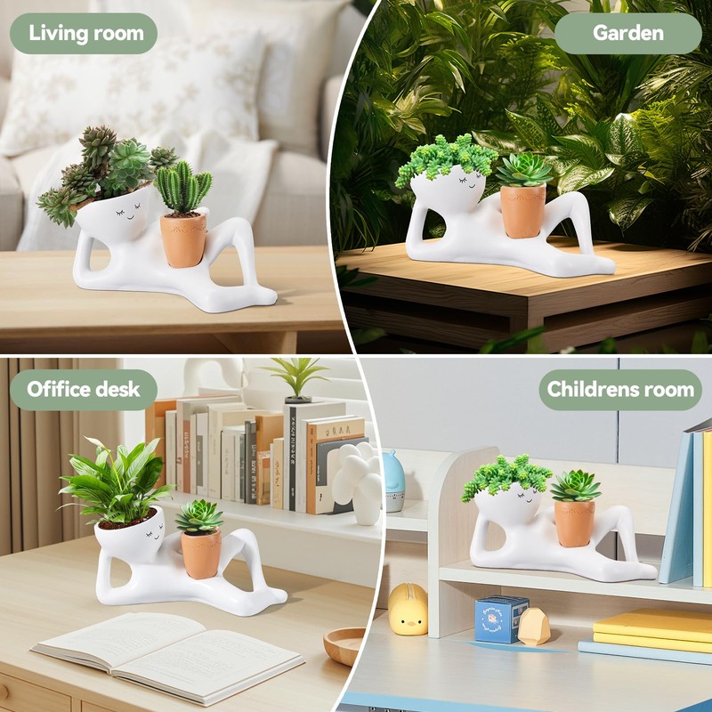 - UNIQUE DESIGN: Charming lazy figure planter featuring a relaxed pose and cute sleeping face design, perfect for adding character to your home or garden decor