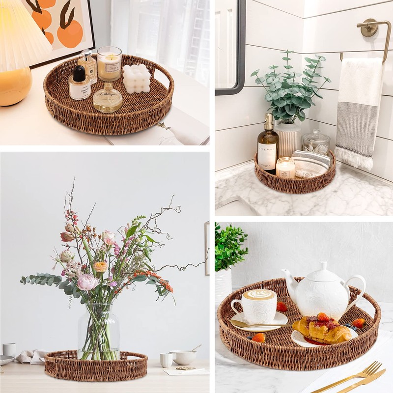 - Widely Used: These woven trays are very versatile. Can be used as the food tray to hold breakfast, coffee, bread, tea, fruits, sweets or good for bathroom to hold hand towels and candles. Built in handles design for easy carrying and serving