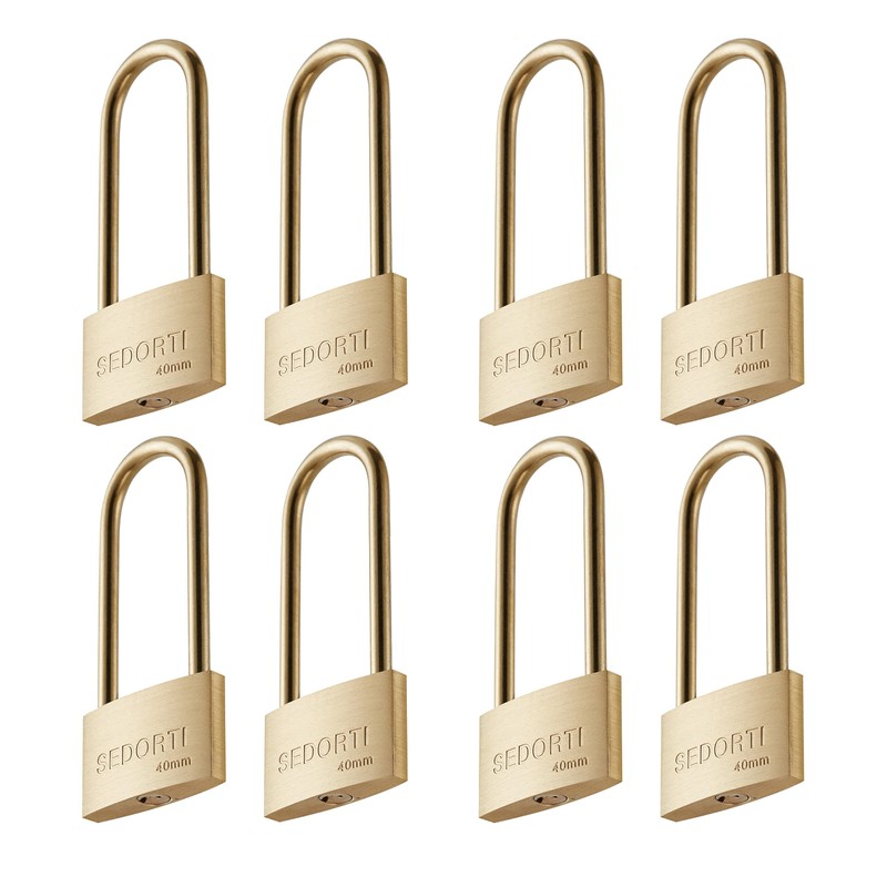 SEDORTI Weather Proof Lock, Keyed Alike Solid Brass Padlocks with Long Brass Shackle, Light Duty, 1-1/2" Wide Body, Marine Padlock, Anti Rust Lock, 8 Pack
