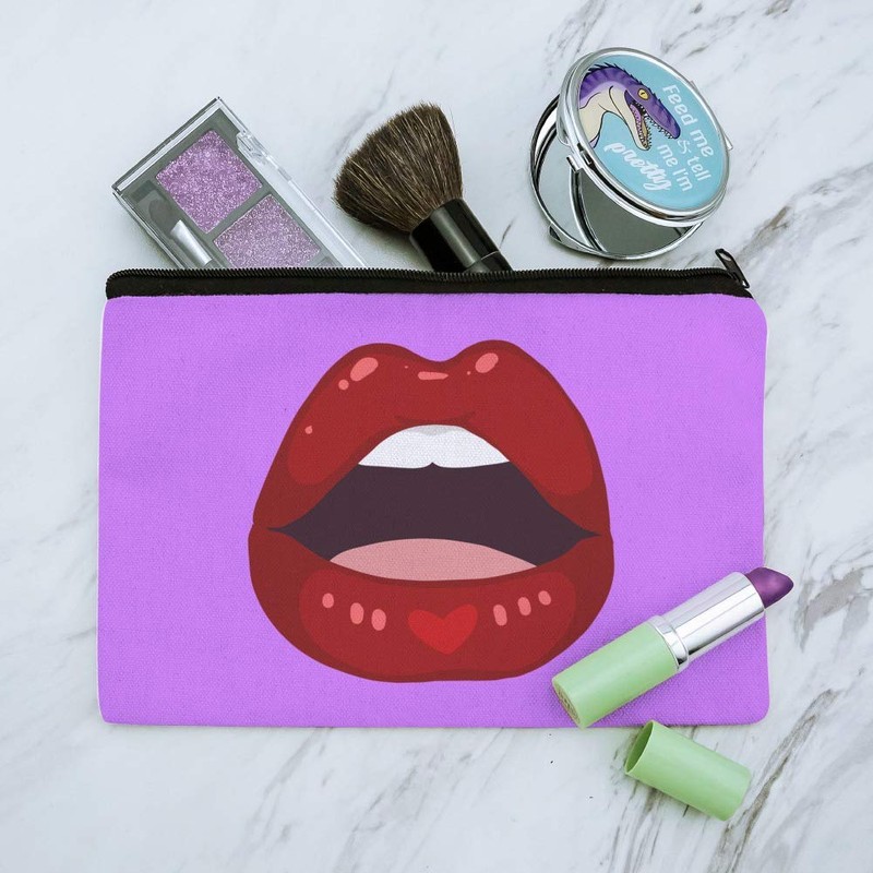Seductive Luscious Open Mouth Lips Makeup Cosmetic Bag Organizer Pouch