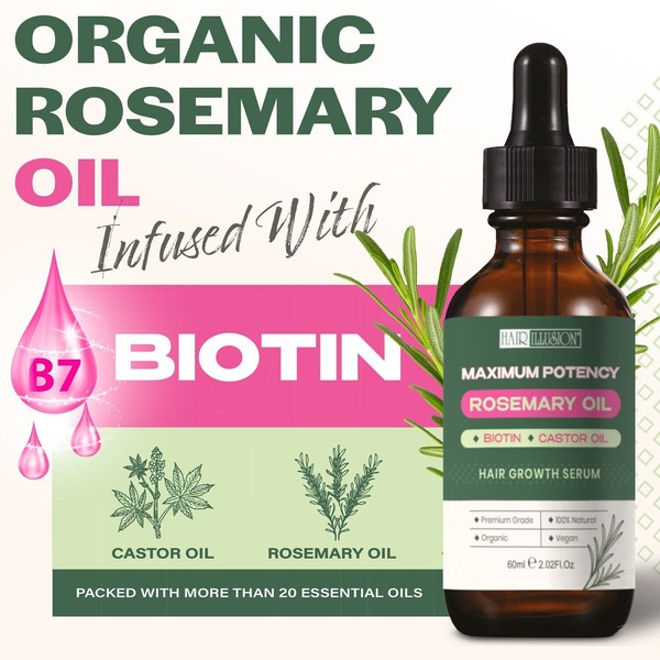 Hair Illusion 100% NATURAL ORGANIC ROSEMARY MINT OIL | Maximum Potency | Infused With Biotin