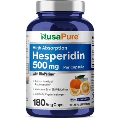 NusaPure Hesperidin 500 mg Per Veggie Caps | 180 Capsules | BioPerine