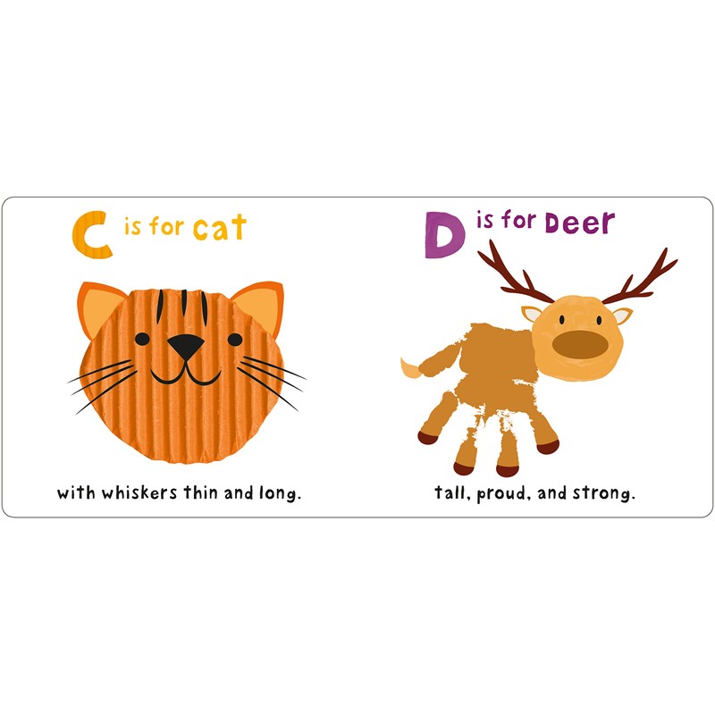 Each page has a colorful illustration made up of footprints, handprints, child friendly art, or a photo. With lots of bright pictures to explore together and core first words to learn, See, Touch, Feel: ABC is the perfect first book to share with your baby.