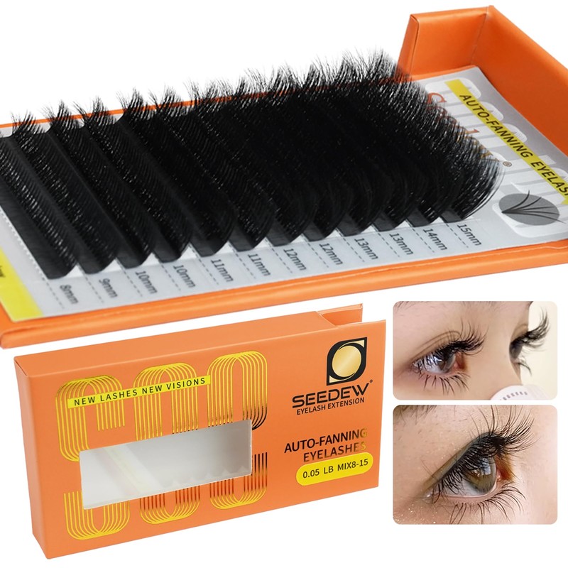 SEEDEW 3D Autofan Lashes, 0.05 LB Curl 8-15mm, Multilayer Volume Eyelash Extensions, Auto Fanning, Natural Individual 5/6/8/10D Lashes for Lash Artists Professional Use Only(0.05-LB-MIX8-15mm-Black)