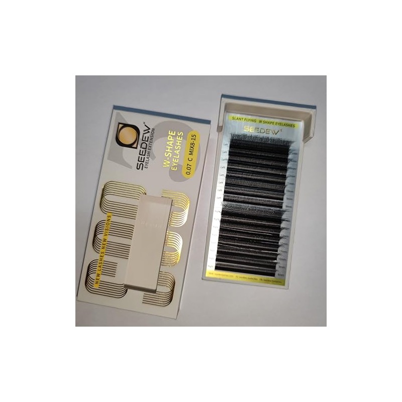 SEEDEW 3D Tilt Spire Lash Extensions, W Shape C Curl 0.07mm MIX8-15mm 12 Rows/Tray, PBT Soft Natural False Eyelashes Grafting for Beginner/Tech Artist, Beauty Salon(Black-0.07-C-MIX8-15mm)