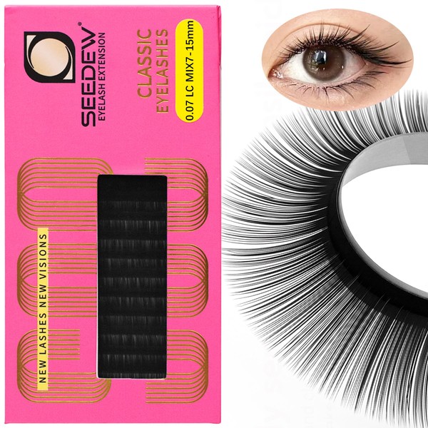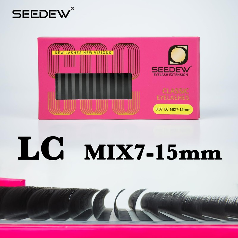 - SEEDEW LC Curl Lash Extensions, Classic Individual MIX7-15mm LC Curl 0.07mm 16 Rows/Tray, Single Natural Soft Lightweight Eyelashes Grafting for Lash Artists, Beauty Salon (Matte Black-0.07-LC-MIX7-15mm)