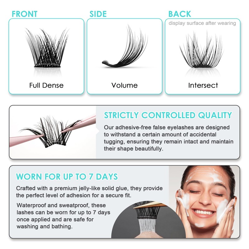 - 【Hochwertiger Festkleber】Unsere Wimpernbüschel verwenden einen hochwertigen geleeartigen Festkleber, der genau die richtige Menge an Haftung bietet und einen sicheren Sitz gewährleistet. Außerdem können sie bei Bedarf leicht entfernt und erneut angebracht werden, sodass Sie sich keine Sorgen machen müssen, ob es beim ersten Versuch perfekt wird.