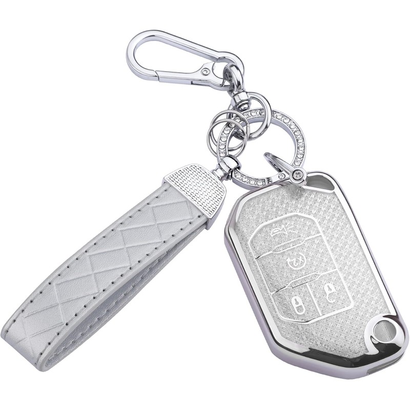 Seedwee for Jeep Fob Cover, Soft TPU Keys Protector Bling Key Fob Keychain for Jeep Wrangler JLU JL Gladiator Rubicon JT Car Flip Key, Silver Clear