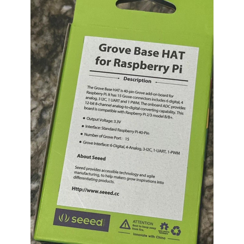 The Grove base HAT is 40 pin groove add-on (expansion) board for raspberry pi. It has 15 Grove connections, including six digital four analog 312 C1 UART and one PWM. The onboard provides 12 bit eight channel analog digital converted capability this board is complete with raspberry pi 2/3 model B/B plus.