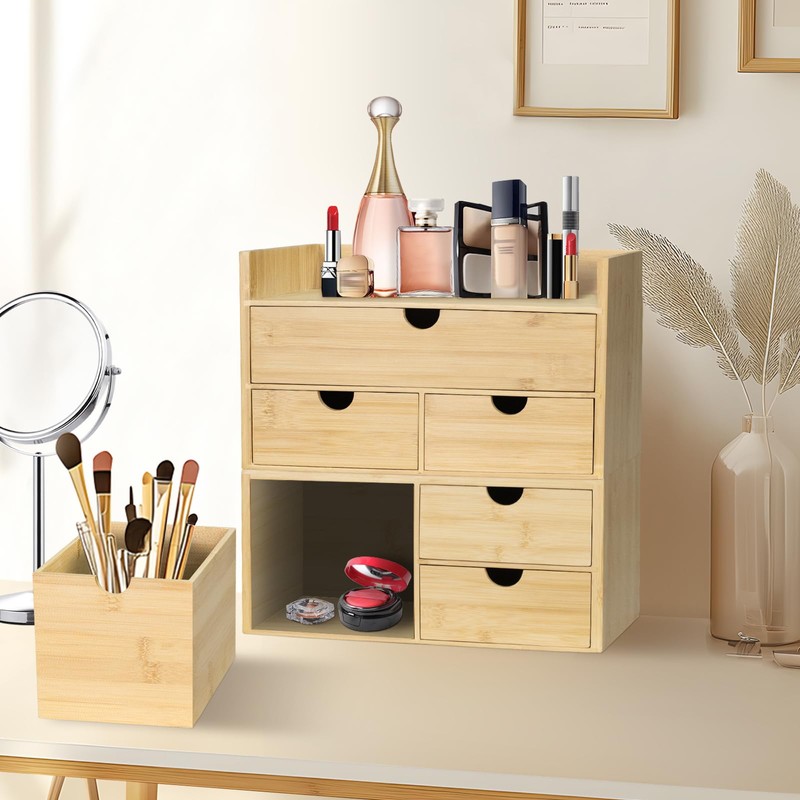 - [SAVE SPACE, INCREASE EFFICIENCY]: Eliminate clutter, don't let messy items fill up your desktop, make your space more neat and tidy, a clean desktop can improve your work efficiency. You can put this countertop organizer with drawers in your office to store notes, Mario, paper clips, etc.; you can also put it on your dresser to store cosmetics, eyebrow pencils, jewellery, etc.