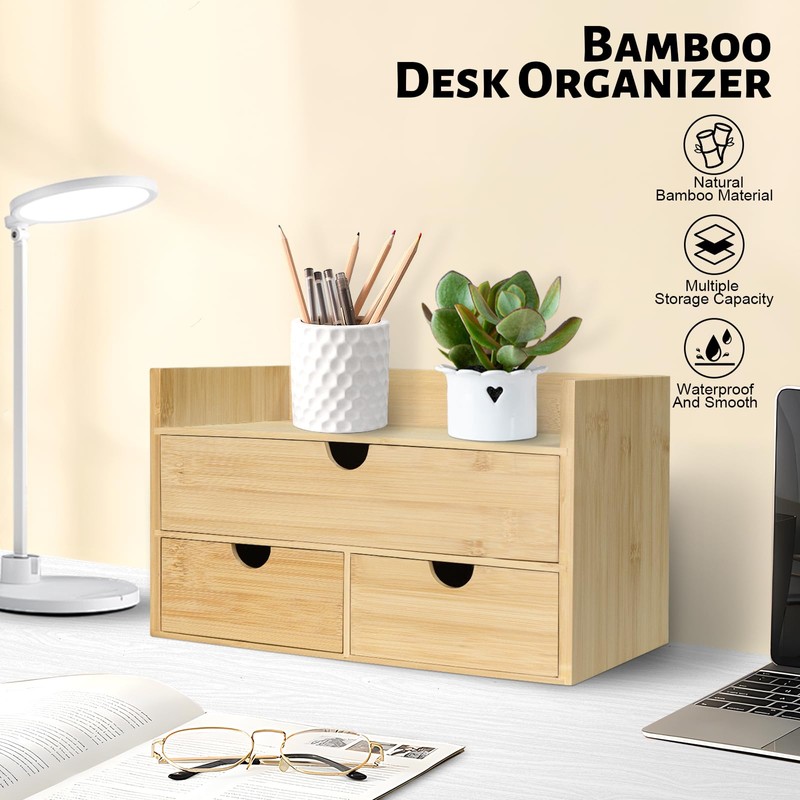 - [MULTI-PURPOSE DRAWER]: As a practical and beautiful bamboo desktop organizer, it can also be part of your home decor when organising and storing various items. Suitable for small spaces, offices, study rooms, coffee bars and more. Keep your desk organised and give your friends or colleagues a must have tabletop storage organizer.