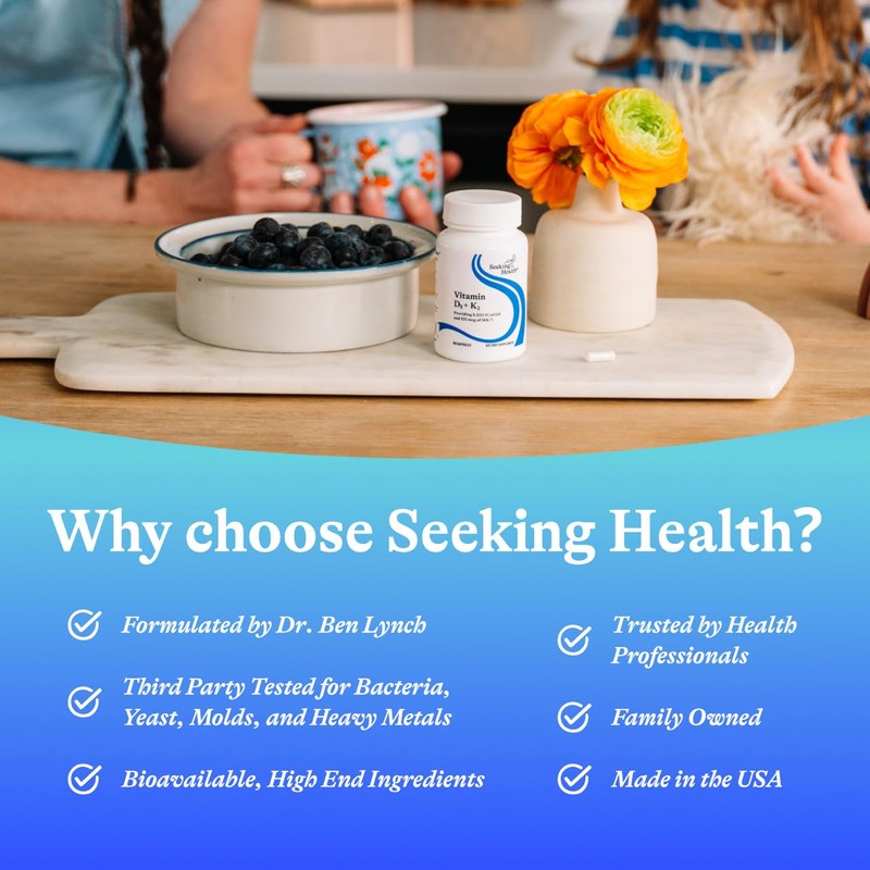 Seeking Health Vitamin D3 + K2 - Immune System & Bone Health Support with Vitamin D3 (Cholecalciferol) & Vitamin K2 (Menaquinone-7) - Vegetarian Vitamin D & K Supplement - 60 Capsules
