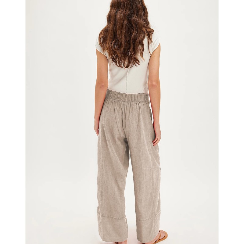 SeeLuNa Linen Pants for Women Cotton Baggy Boho Casual Palazzo Pants Wide Leg Long Lounge Trousers with Pockets(Khaki, M)