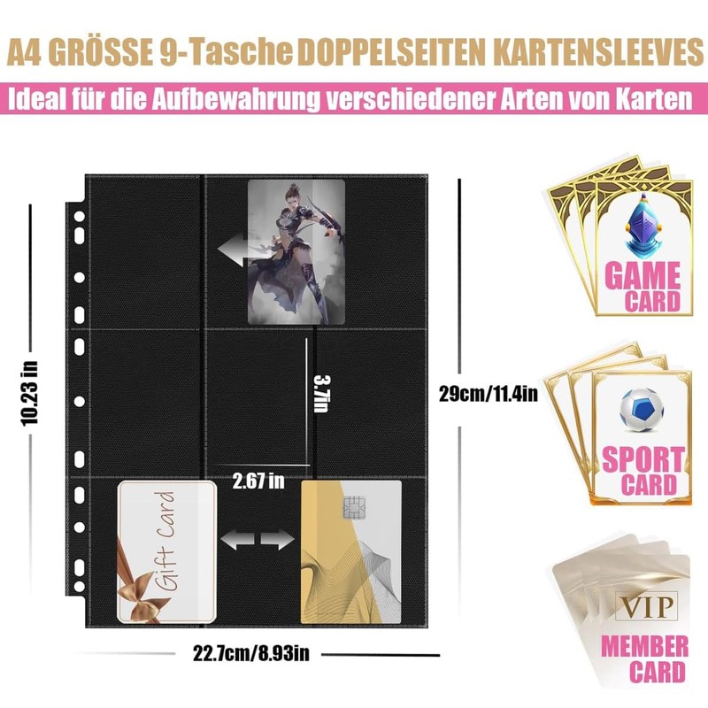 - These double sided card sleeves feature 1800 high capacity pockets and provide ample space for all your standard A4 folders. Perfect for storing a variety of trade cards, baseball cards, Kpop photo cards and more.