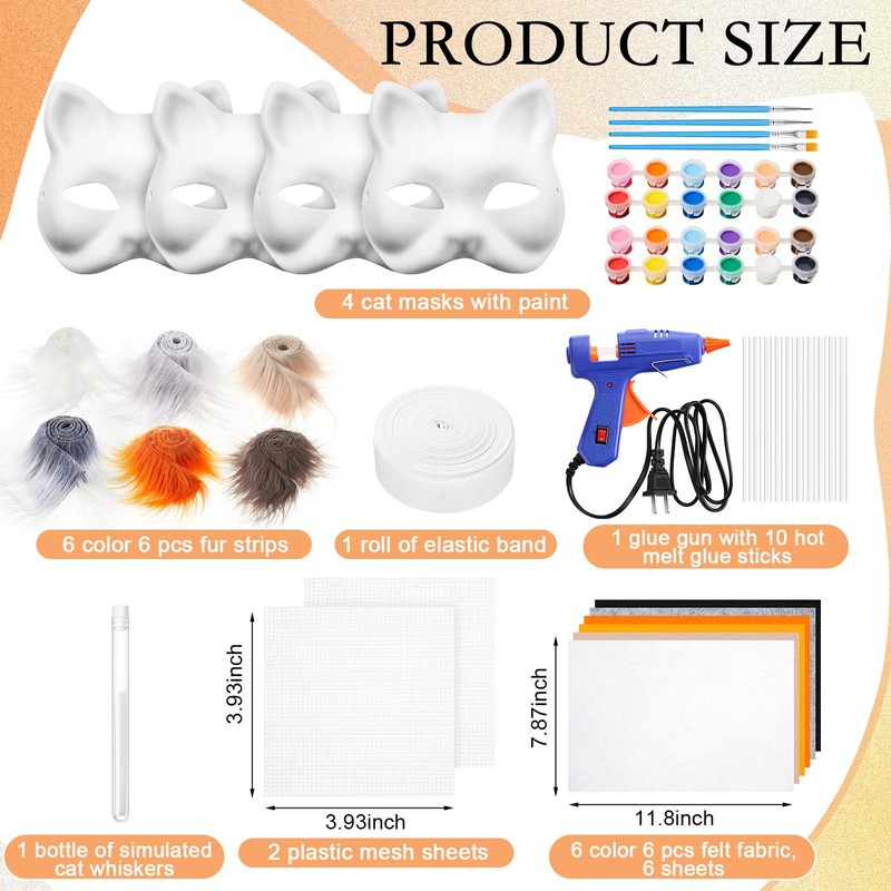 - Considerate Cat Masks to Paint: this is definitely enough for you to make a satisfactory therian DIY cat costume mask, even if you don't have anything prepared at home; The hot melt glue gun can effectively help you fix the non woven fabric on our mask or bond other materials; The mesh can highly simulate animal eyes, the bandage can make you more comfortable during wearing, and a bottle of simulated cat whiskers makes your mask more vivid, come and try making your own therian cat mask