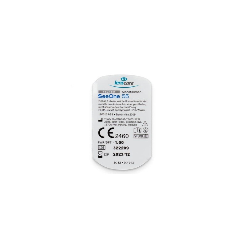 The SeeOne 55 is one of the most popular monthly lenses from Lenscare. This is not surprising, because the monthly lens is made of the proven contact lens material hydrogel, which is characterised by high spontaneous compatibility and excellent wearing comfort - of up to twelve hours.