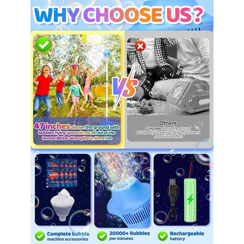 SEESE Bubble Maker For Kids - Adjustable Height Stand, Auto Blaster with Musi...