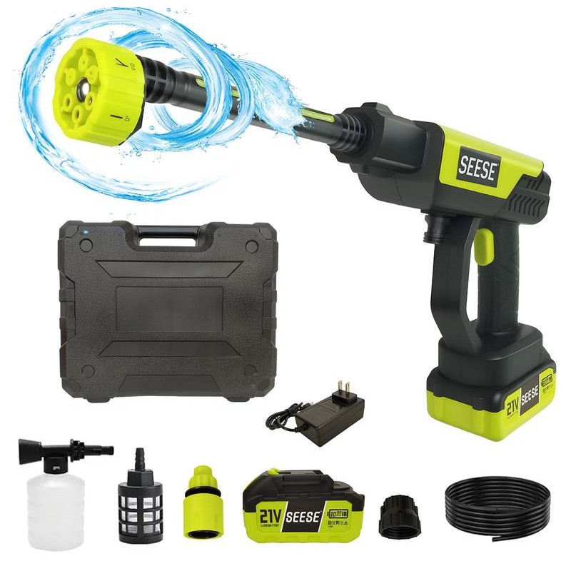 SEESE Cordless Pressure Washer and Single Port Charger Base, Bottle Portable Washer for Car,Home Cleaning & Garden Watering:_500PSI-Water Pressure