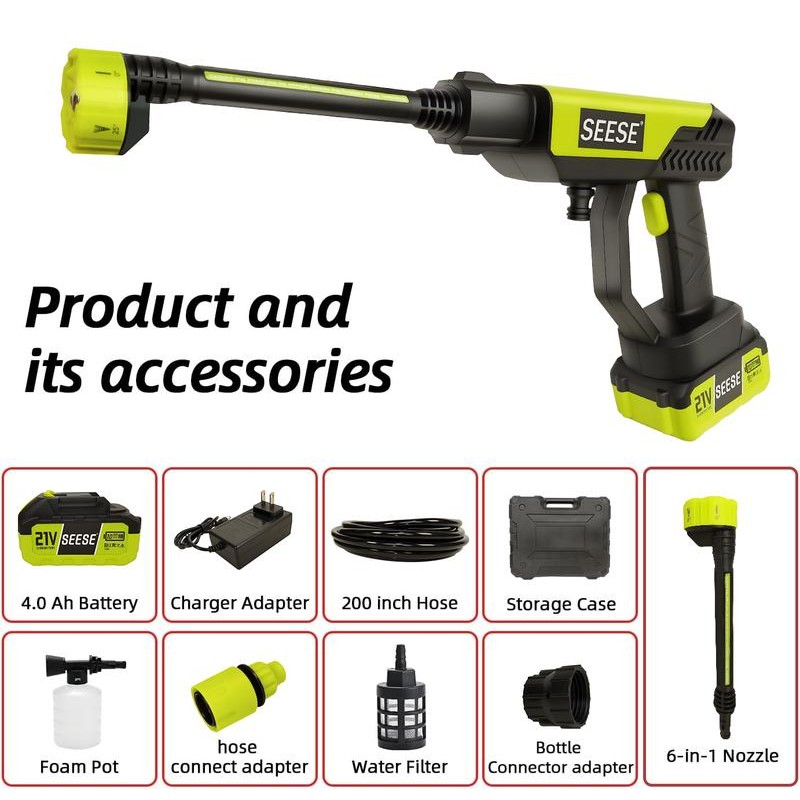 - SEESE Cordless Pressure Washer and Single Port Charger Base, Bottle Portable Washer for Car,Home Cleaning & Garden Watering