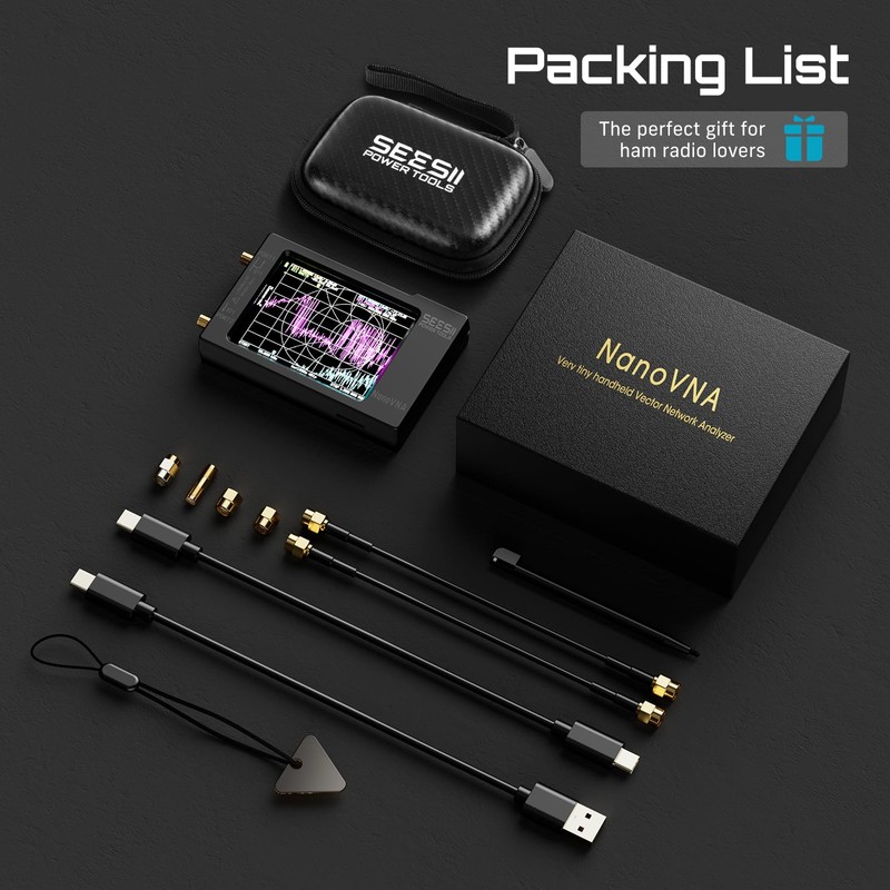 - Abundant Accessories: Come with 1x NanoVNA-H host, 2x 30cm SMA Male to Male RG174 RF Cable, 1x SMA Female to Female Connector, 1x SMA SHORT, OPEN & LOAD simple calibration kit, 1x USB Type-C Data Cable, 1x USB-C to USB-C Line, 1x Lanyard, 1x Touch Plectrum, and 1x custom-designed EVA carrying case. All the accessories are packaged in a sophisticated box. This is a nice VNA analyzer for your own use or as a gift for your friend