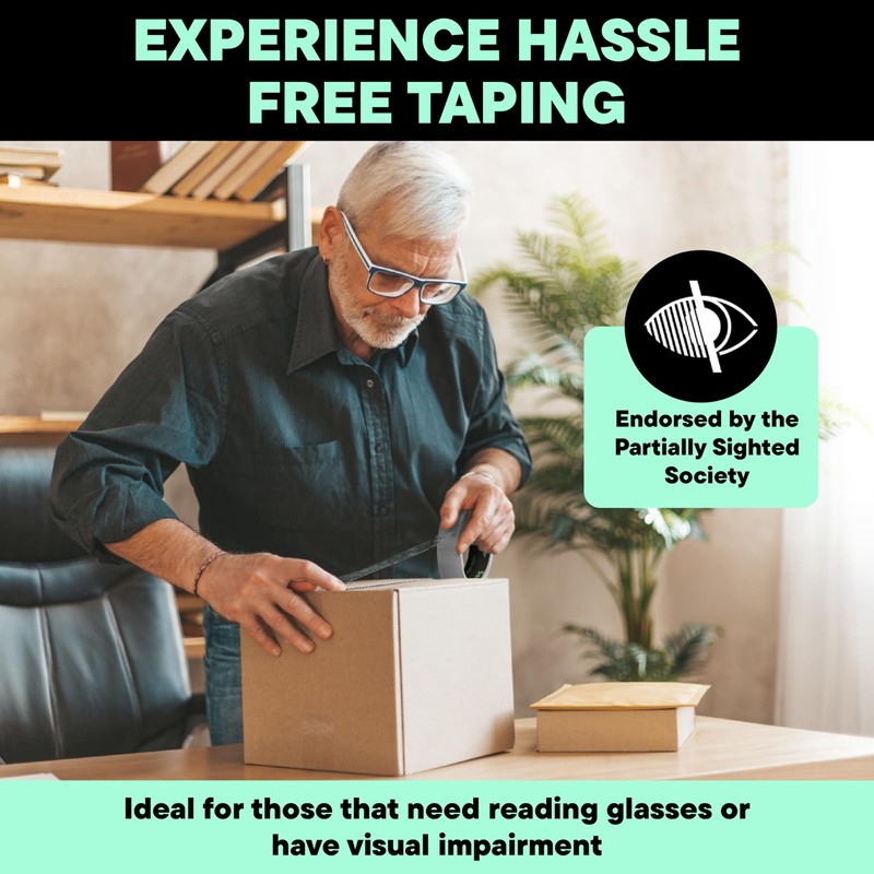 - User-Friendly for Everyone – Designed with ease in mind, our wrapping tape is also ideal for those who use reading glasses or even have visual impairment. Endorsed by the Partially Sighted Society, the dark-core design keeps the tape edge visible, eliminating frustration. Simple to use for crafts, packaging, or household tasks—no more squinting, fumbling or scratching around with your nails!