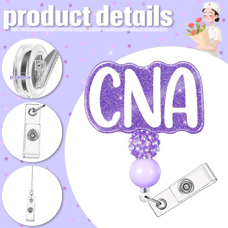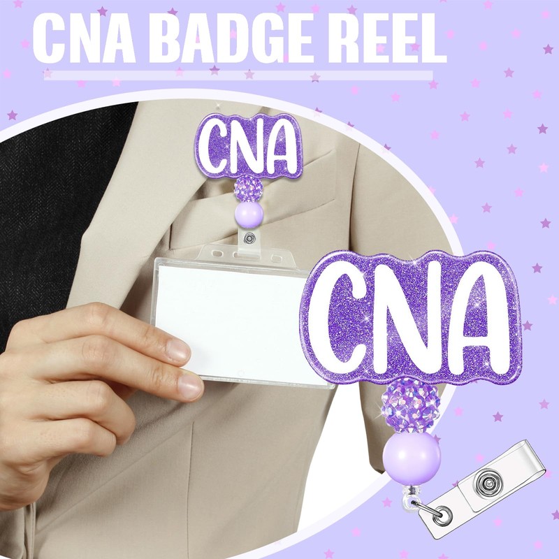 SEEVOR CNA - Carrete retráctil para placa de enfermería, soporte de identificación de enfermería para enfermeras CNA, estudiantes (morado CNA)