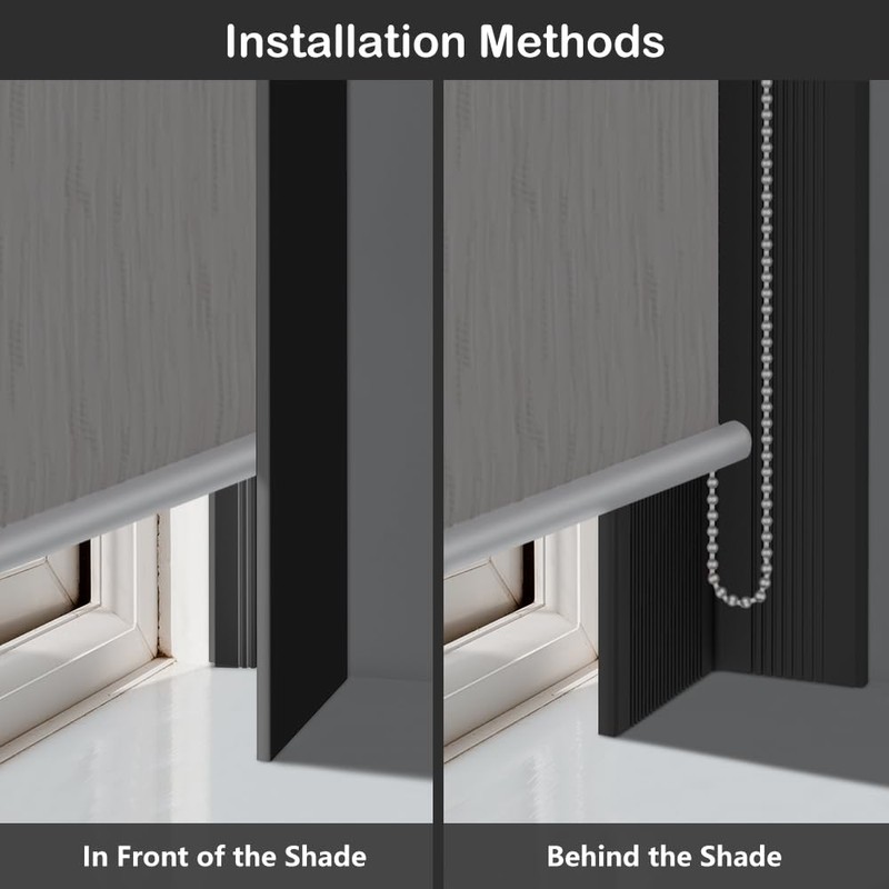• SUITABLE FOR MANY SCENES AND CURTAIN STYLES: Blackout side track can provide you a darker environment when you need it. We offer black and white color options for cellular shades, honeycomb shades, roller shades and blinds, Roman shades and so on