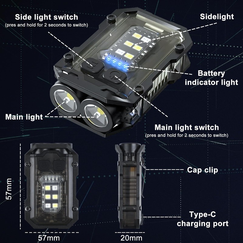 - 【3 Light LED & COB Source- 8 Modes】Long Press To Open Light. This led & cob small pocket flash lights have dual led light source, You can switch freely according to the mode of LED light source has two lights strong, two lights weak, single light strong, single light weak--Side Cob light source mode has white strong light, white weak light, red on, red blue flashing.