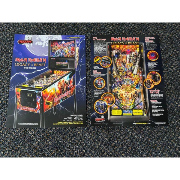 YOU ARE BUYING 2 FACTORY ORIGINAL STERN IRON MAIDEN PRO PINBALL PROMO FLYERS. GREAT FOR FRAMING. SEE PIC 2