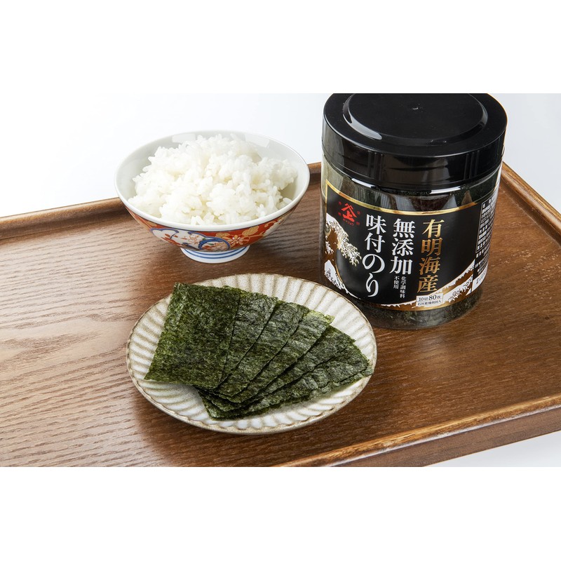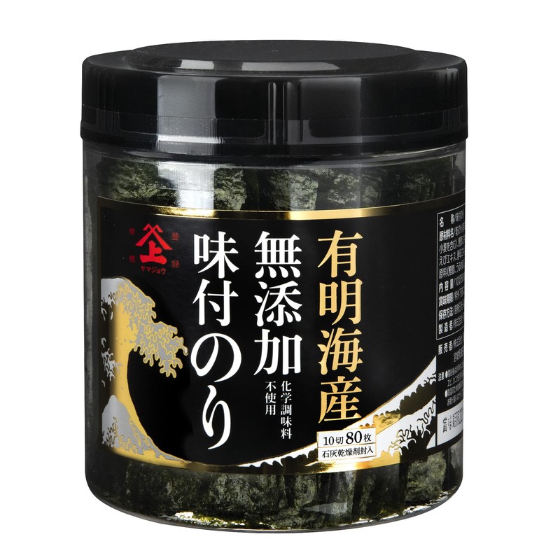 - This is the size of 80 sheets (8 sheets of nori) produced in Ariake Sea. Finished with no chemical seasoning additives