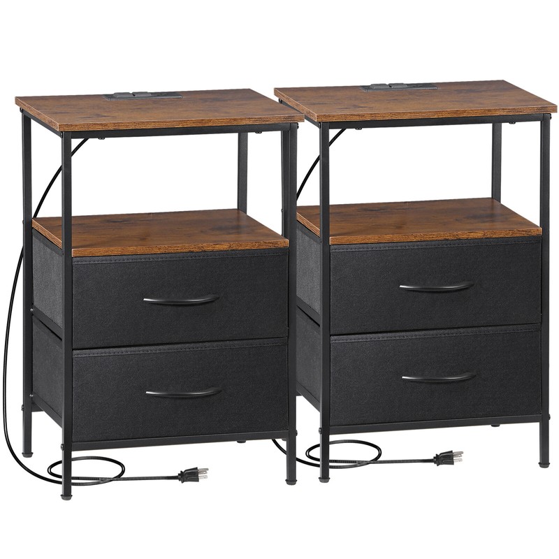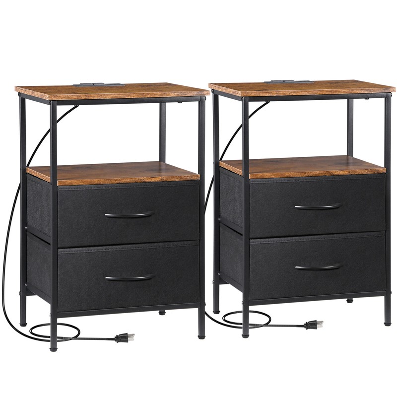 Segawe 2 PCS Brown Nightstand with Drawer Bedside Table with 2 USB Port& Outlet Bedroom