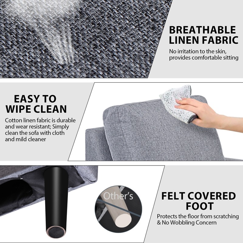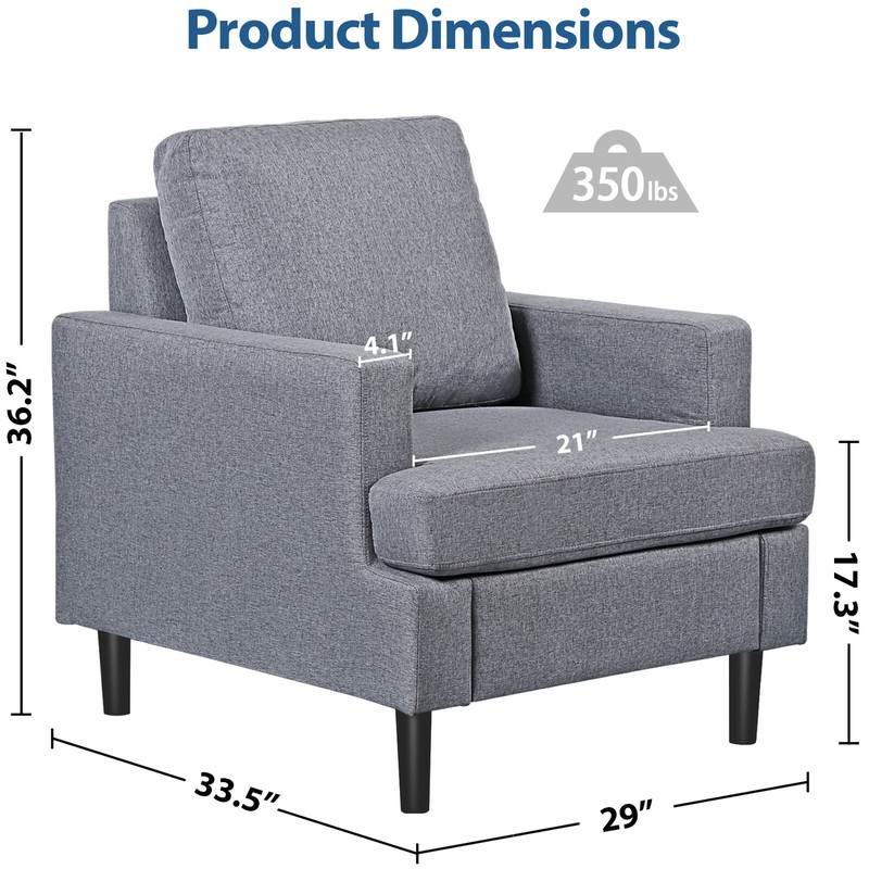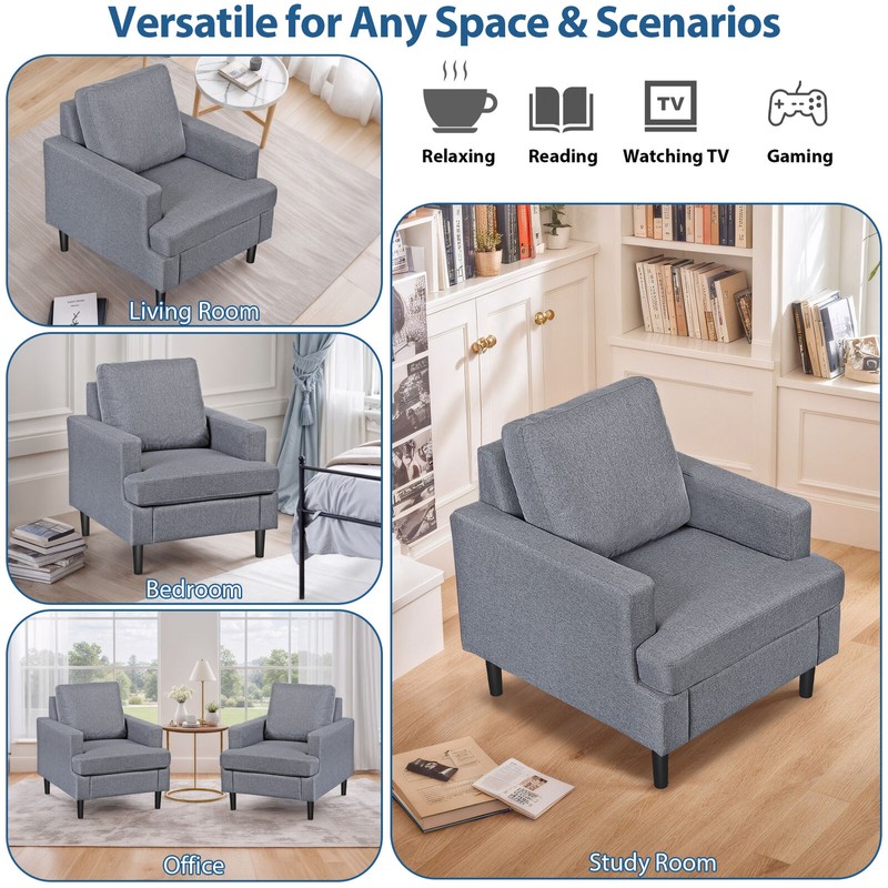 Segawe Accent Arm Chair Linen Fabric Upholstered Comfy Single Sofa For Living Room Gray