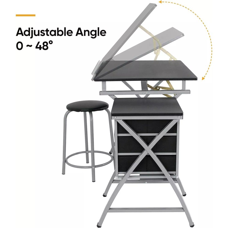 SEGAWE Drafting Table and Stool Set Drawing Drafting Desk w/Drawers Artists Workstation