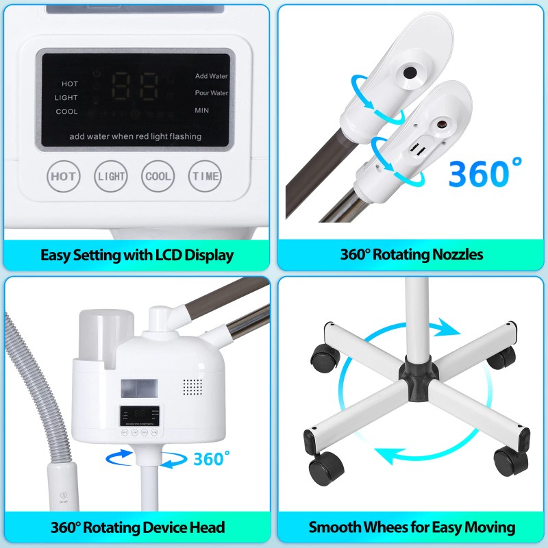 - [Multiple Uses]: This 3 in 1 facial steamer suitable for any spa, beauty clinic, salon and home. The simple design and operation .