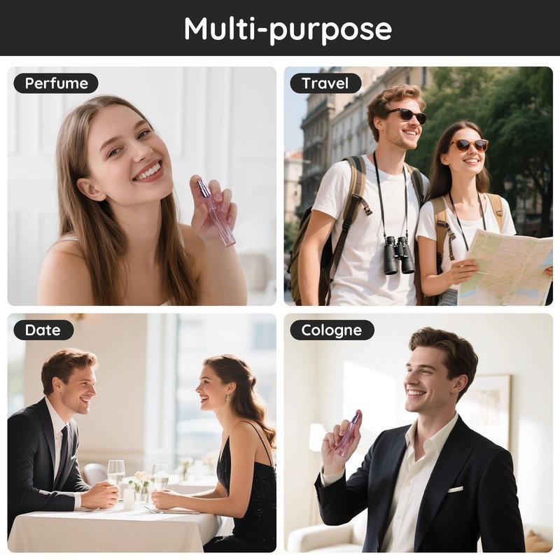 - Multi-application: Ideal for perfume, fragrances, cologne, face spray, toiletries product, various water-based liquids in mind. An ideal cosmetic accessory for daily activity, especially for traveling and outgoing