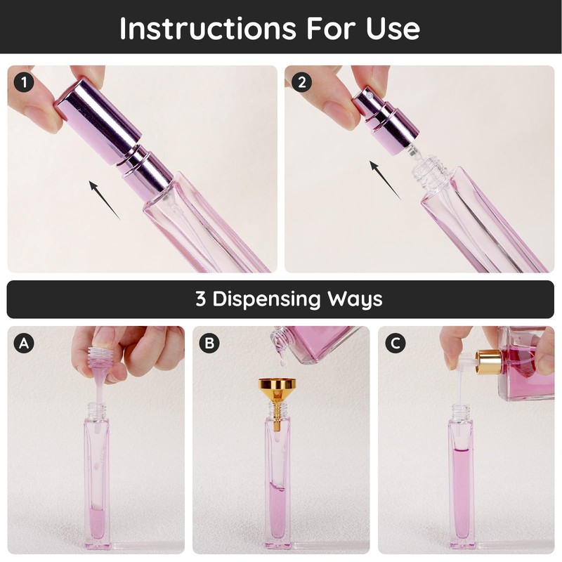 - Easy to Refill: The package also includes 1*FUNNEL+1*DROPPER+1* DISPENSING PUMP. You can dispense liquid into the mini perfume atomizer easily with these useful perfume refill kit