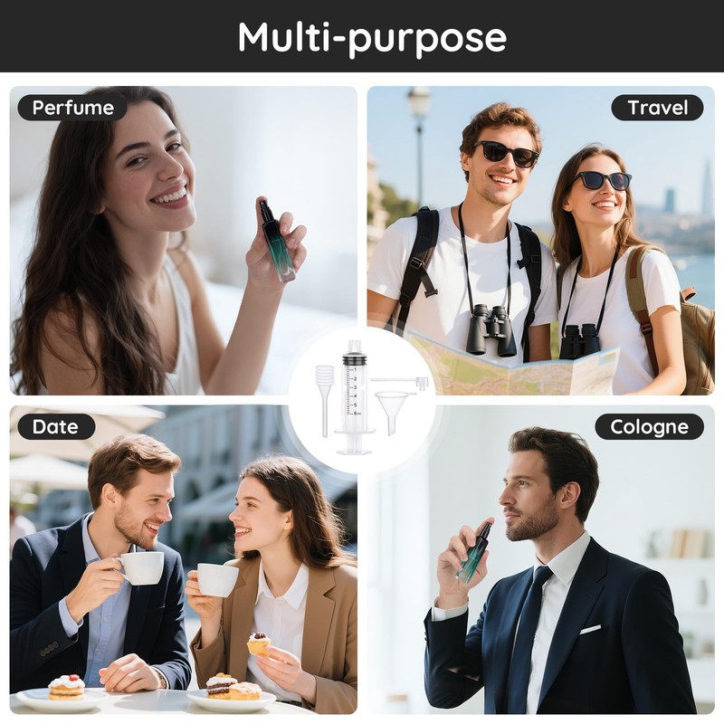 • Multi-application: Ideal for perfume, fragrances, cologne, face spray, toiletries product, various water-based liquids in mind. An ideal cosmetic accessory for daily activity, especially for traveling and outgoing