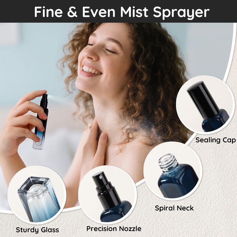 • Fine Mist Atomizer: With the utilization of high precision nozzle, these perfume bottles provide a fine and even mist spray, it is great for dispensing perfume
