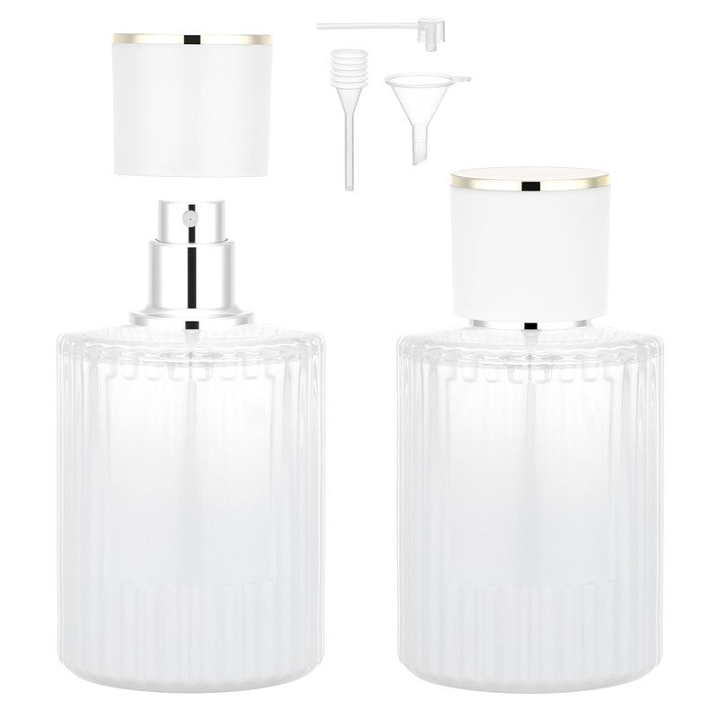 Segbeauty 1.7oz Glass Refillable Perfume Bottle Travel Atomizer, 2pcs Travel Cologne Sprayer, 50ml White Vintage Perfume Bottle Empty, Small Cologne Spray Bottle with Dispenser Transfer Tool Set