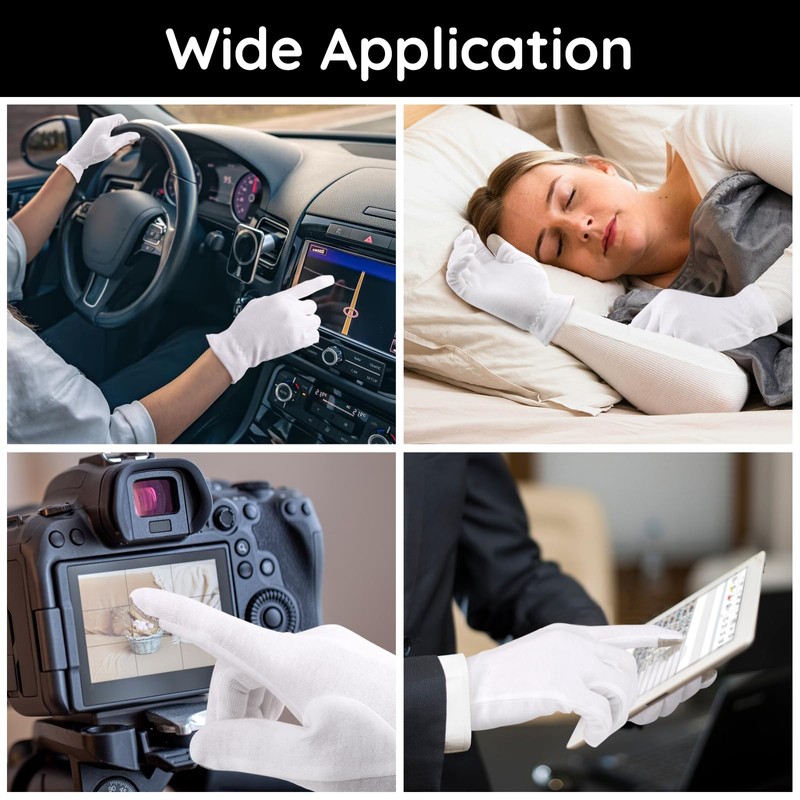 - Versatile Uses: These cotton gloves aren't just for moisturizing; they're great for handling delicate items like jewelry or photos to prevent dirt and fingerprints. As well as for use in performances, driving, and general cleaning