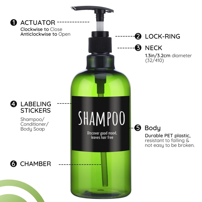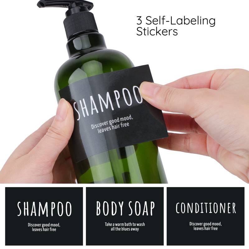 • Appropriate capacity with 3 waterproof self-labelling stickers: Each dispenser bottle holds 16.9 oz large capacity to meet the essential needs of the whole family. 3 separate waterproof label stickers body soap, shampoo, conditioners are not pre-glued to the bottles, you can stick them on as you like.