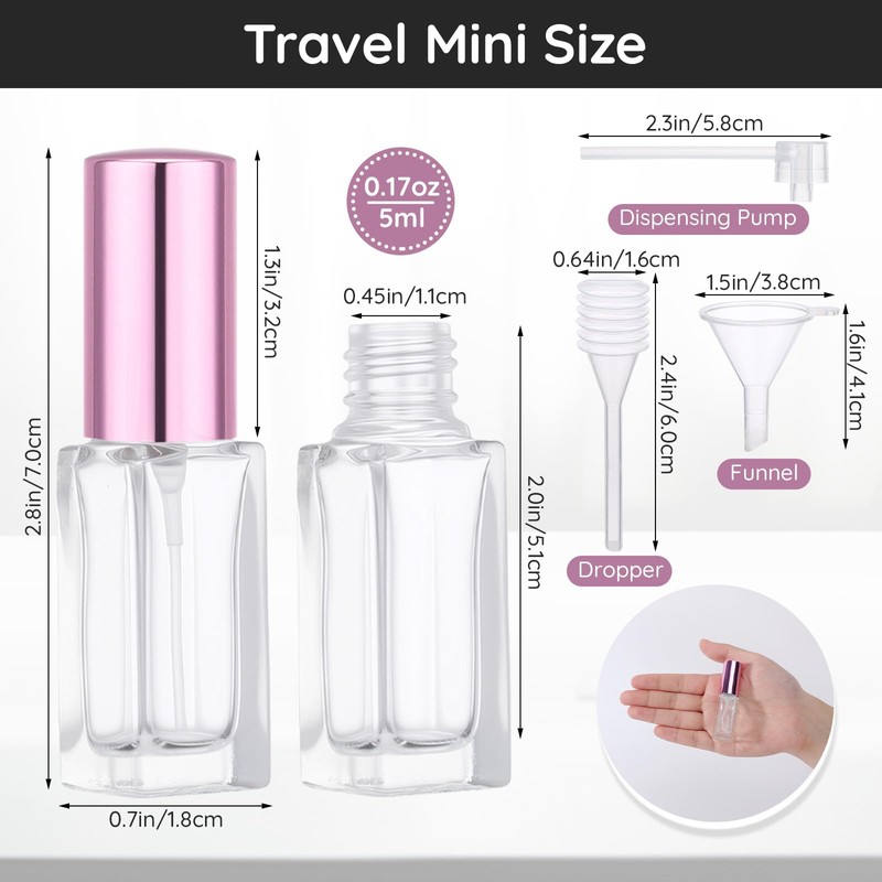 - Easy to Refill: The package also includes dispenser transfer tool set of FUNNEL + DROPPER + DISPENSING PUMP. You can dispense liquid into the mini perfume atomizer easily with these useful perfume refill kit