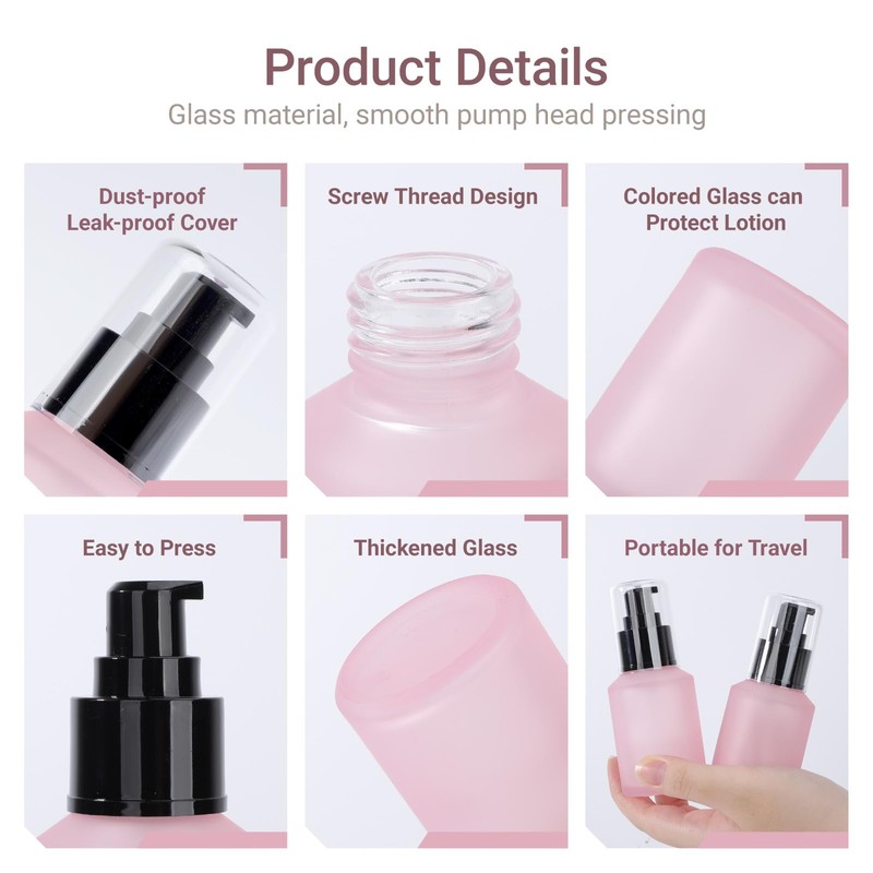 Segbeauty 2oz Frosted Glass Refillable Pump Bottles for Toiletries, 5pcs Travel Size Empty Bottles with Pumps for Cosmetics, 60ml Pink Travel Containers for Oils Bottle Dispenser Liquid Containers