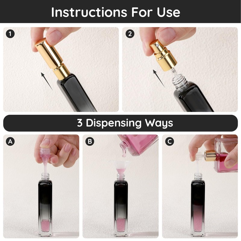 - Easy to Refill: Comes with 1*FUNNEL+1*DROPPER+1*PUMP, you can easily dispense liquid into the mini perfume atomizer