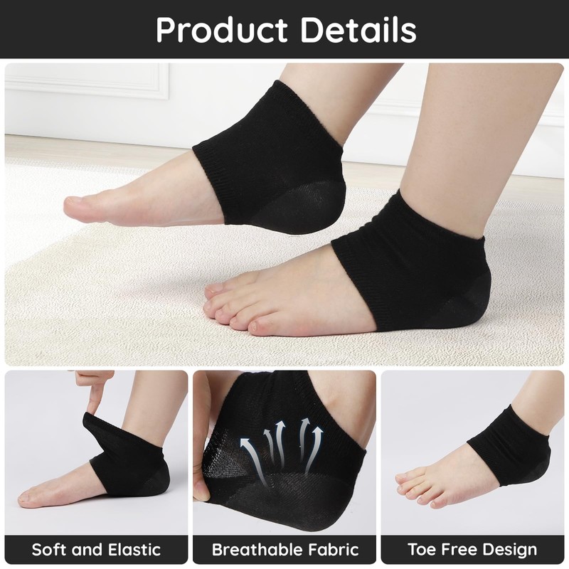 - Gel lining: The gel inner lining on the heel socks effectively locks in moisture, helps to soften dry and cracked skin and makes your feet softer and smoother.