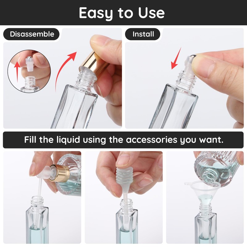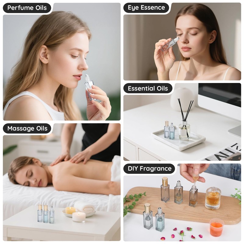 - 【Vielseitig & Durchdacht】Diese Kleine Glasflaschenn sind ideal für Parfüms, ätherische Öle, Massageöle und mehr. Perfekt für die tägliche Pflege oder Reisen — ihr stilvolles Design und praktischer Nutzen machen sie auch zum durchdachten Geschenk für DIY-Parfüm-Liebhaber.